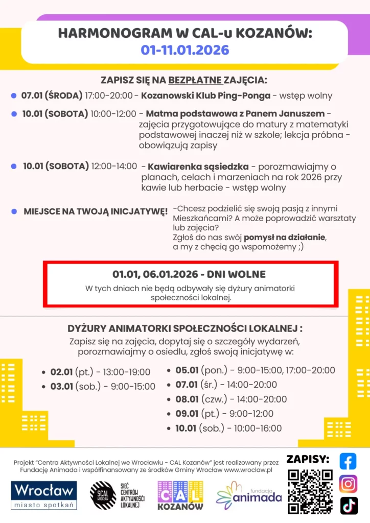 HARMONOGRAM 01-11.01.2026
