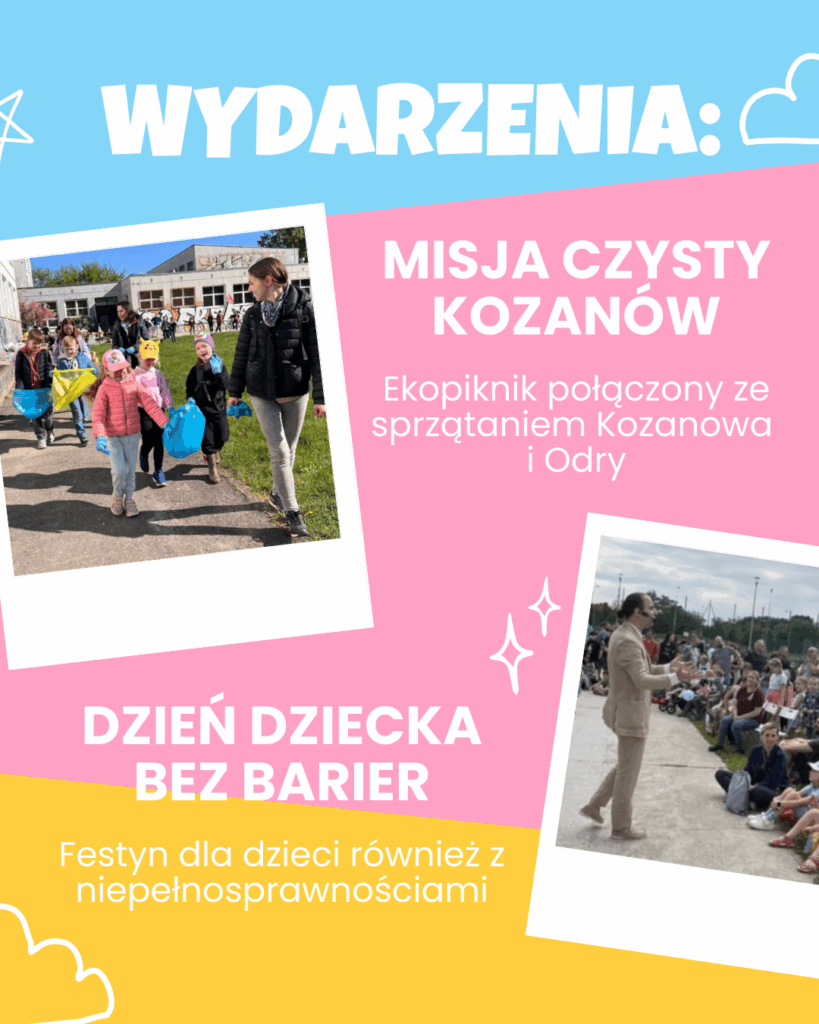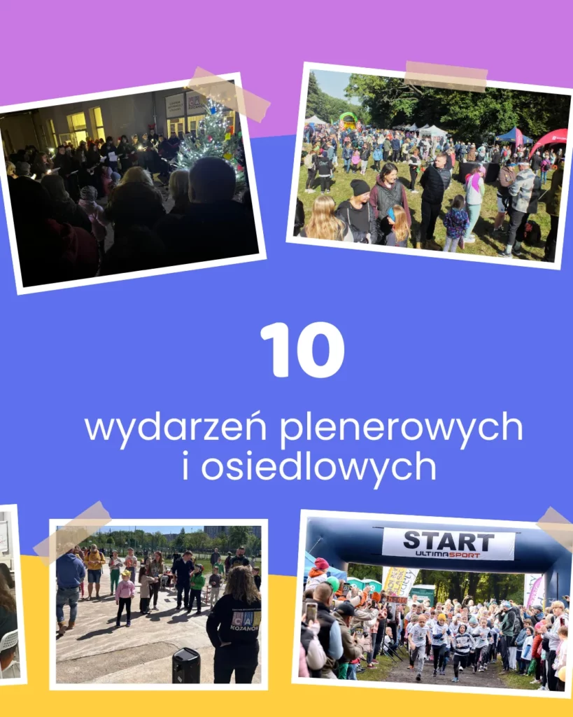 👉 Zorganizowaliśmy 10 wydarzeń osiedlowych i plenerowych (m.in. Ekopiknik „Misja: Czysty Kozanów”, Festyn Dzień Kozanowa, Kijkowe powitanie wiosny, akcję na Dzień Dziecka, osiedlową choinkę i nie tylko!